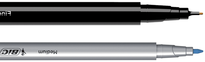 - Linere cu vârf mediu sau subțire și cerneală pe bază de apă